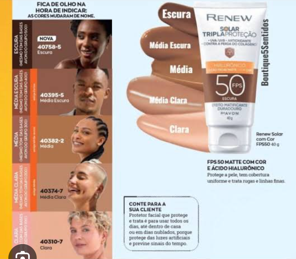 Protetor solar facial cor média Avon 50 FPS
